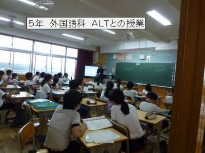 5年生は、ALTのネイティブな発音を聞いて、英単語を覚えていました。音については、何度も聞いたり話したりする中で、音声に慣れ親しむことが大切です。宣言下にゲーム要素のあるにぎやかな活動をやらないようにしています。