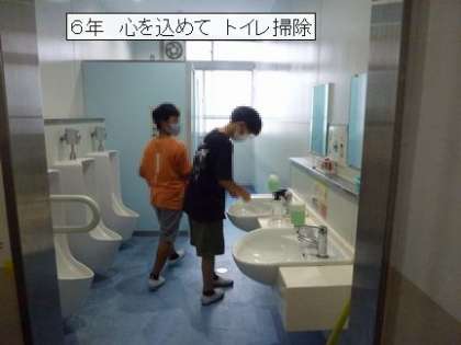 トイレ掃除にやりがいを感じて、懸命に取り組む6年生。後輩たちに、良い手本を示してくれて、ありがとう。