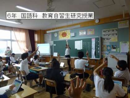 10月12日 6年教育実習生研究授業 公開日 2021/10/12 更新日 2021/10/12 校長室から 6年生で、国語科で教育実習生による研究授業がありました。 学習用タブレットを使っての意見交換やまとめなど、先生の指示をよく聞いて進めることができました。