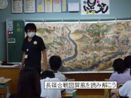 10月13日 6年社会科出前授業 「武士の世の中」 公開日 2021/10/13 更新日 2021/10/13 校長室から 6年生は、郷土資料館より講師をお招きし、戦国時代の武士の生活や戦いについて学びました。 長篠合戦図屏風や鎧、火縄銃などのレプリカに直に触れながら、その時代に生きていた人々に思いをはせました。