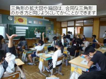 6年生でも 算数科の「図形の拡大と縮小」の教育実習生による授業研究がありました。