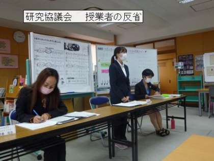 音楽の研究授業について、市の音楽科指導員の先生と研究協議会をしました。