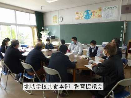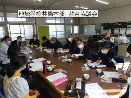 各自治区区長様方、PTA会長・副会長、地域コーディネーター、校長、教頭による地域学校共働本部の教育協議会を開きました。