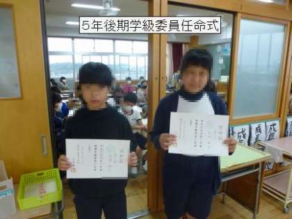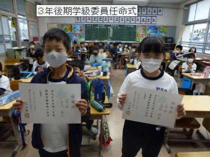 後期学級委員の任命式を行いました。