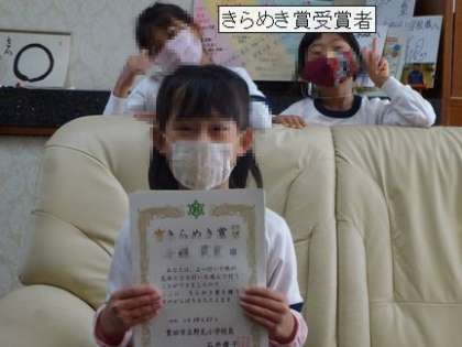 今日は、2人の受賞がありました。まじめに係りの仕事に取り組む1年生です。