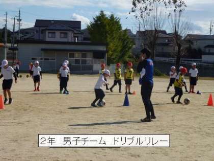 男子チームと女子チームに分かれ、簡単なサッカーボールの操作を楽しみました。