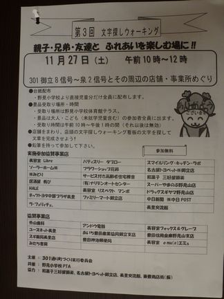 第3回文字探しウォーキング & バザー が 11月27日に開催されます