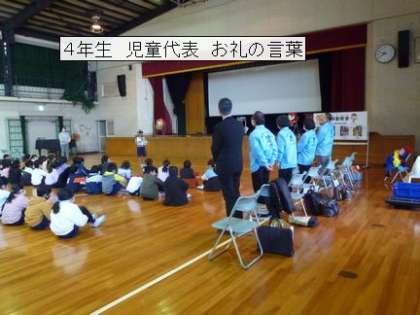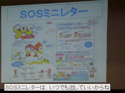11月26日 人権移動教室 3 公開日 2021/11/25 更新日 2021/11/25 校長室から SOSミニレターは、おうちの人や先生、友だちにも言いたくない困りごとを 人権擁護委員さんが一生けん命考えて下さる仕組みになっています。いつでも出せるので、机の引き出しにでも、大切にしまっておきましょう。 4年生も2年生も姿勢よく集会に参加できました。最後の挨拶の人たちも立派でした。