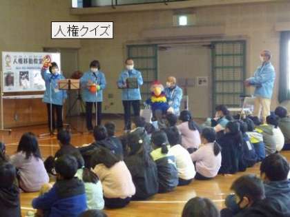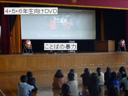 人権移動教室が、1年ぶりに開催されました。1時間目は、4年生が参加し、5・6年生は、同じDVDを教室で視聴しました。