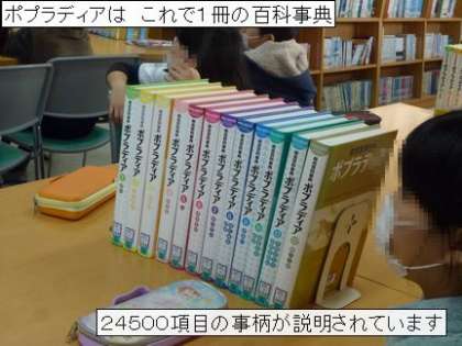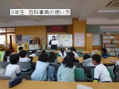 11月30日 3年生 百科事典の使い方 公開日 2021/11/30 更新日 2021/11/30 校長室から 毎週火曜日に勤務してくださる学校図書館司書さんに、「百科事典の使い方」を教わりました。 知りたいことが説明されているページの見つけ方を知り、実際に事典で調べてみました。ポプラディアは12冊の分冊に分かれていて、24500もの項目が載っています、