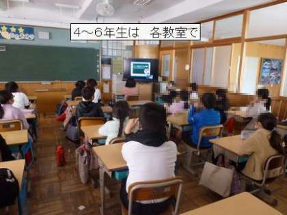 1・2・3年生は体育館で、4・5・6年生は各教室で行いました。