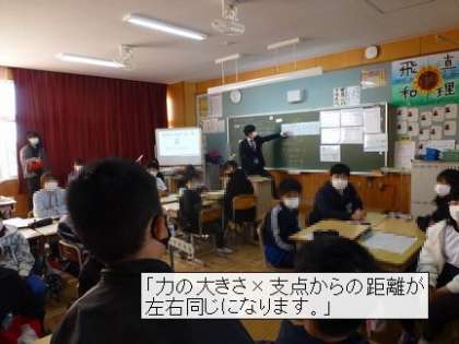 6年1組で、理科 研究授業「てこのはたらき」が行われました。