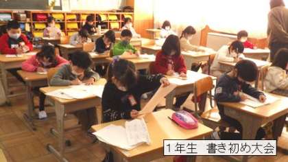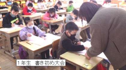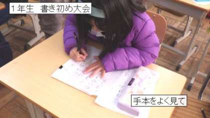 1年生です。「ふゆ休みに、はじめてスキーに行ったよ。白いゆきが、ひかっていました。」
