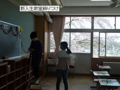 入学式のために、新6年生が1日早く登校し、準備をしました。