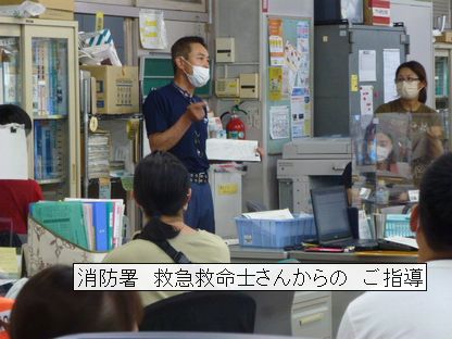 今回は、消防署より救急救命士の講師をお招きし、シュミレーション訓練を観察した後、ご指導いただきました。