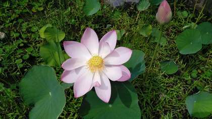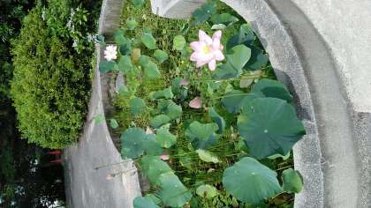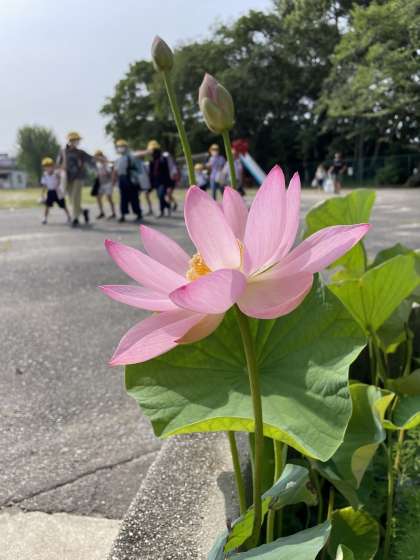 トンボ池に、今年も蓮の花が咲きました。小さなつぼみも含めて、12本。しばらく、毎朝、楽しめそうです。
