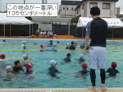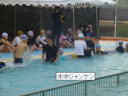 少雨決行。雨の中、3年ぶりに泳ぐ6年生。