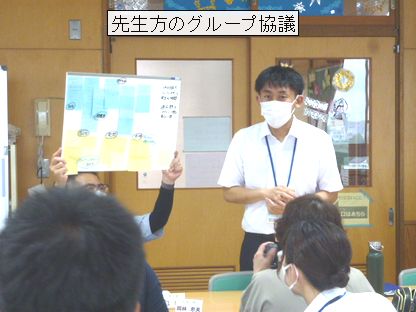 数学的な見方・考え方をもとに、一人学習やグループ学習を充実させる工夫について、代表授業を土台に 協議しました。