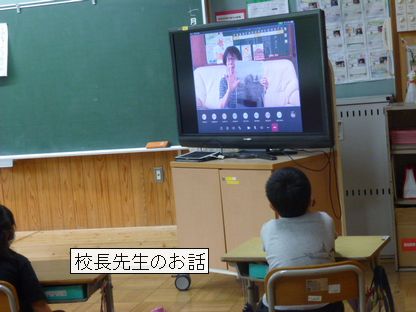 7月20日 夏休み前全校リモート集会 公開日 2022/07/21 更新日 2022/07/21 校長室から 夏休み前分散型全校集会を体育館で行う予定でしたが、校内感染拡大のため、学習用タブレットを使ってリモートで行いました。 3年生と6年生の代表が意見発表を行いました。活動の記録(非公開)でご覧ください。