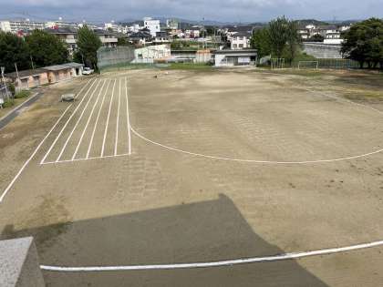 職員作業で草刈りをして、ラインをひいてみました。運動会が、楽しみです。