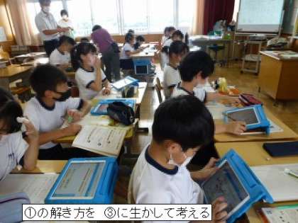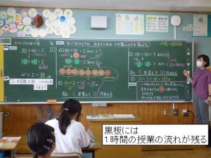 9月6日 4年2組 算数科少人数指導研究授業 2 公開日 2022/09/06 更新日 2022/09/06 校長室から 子どもたちは、80÷30の考え方を生かして、170÷30に挑戦です。 学習用タブレットに配信された10円玉を使って考える人、確かめ算を使って答えを確かめる人 ・・・ 自分に合う方法で解くことができました。 (何百何十)÷(何十)の計算は 1の位の0を隠して検討づけて商を立て、あまりの大きさに気を付けることを学びました。