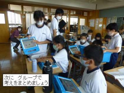 一人で自分の考えをもった後は、3人グループで学びあいをし、さらに提出された各クループの意見を見ながら、考えを深めていきました。