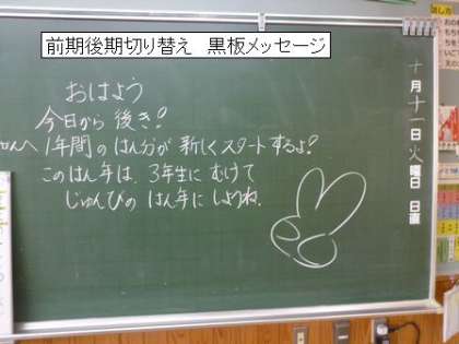 10月11日 後期のスタート 黒板メッセージより
