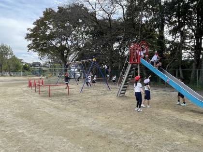 運動会の練習をがんばったあとの長放課です。ブランコや滑り台、サッカーなど元気いっぱい遊んでいます。