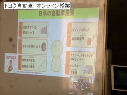 11月 9日 5年生 トヨタ自動車オンライン授業 公開日 2022/11/09 更新日 2022/11/09 校長室から 社会科の学習の一環として、トヨタ自動車さんとつながって、オンライン授業を行っていただきました。 豊田市にあるトヨタ自動車に関わるお仕事をされている家族が多いらしく、興味を持って学ぶことができました。