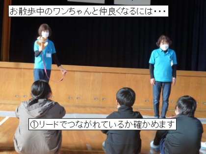 散歩中のワンちゃんとの正しい接し方を学びました。