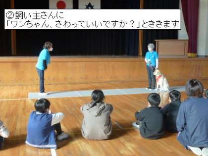 (2)飼い主さんに「ワンちゃん、さわっていいですか」とたずねる。