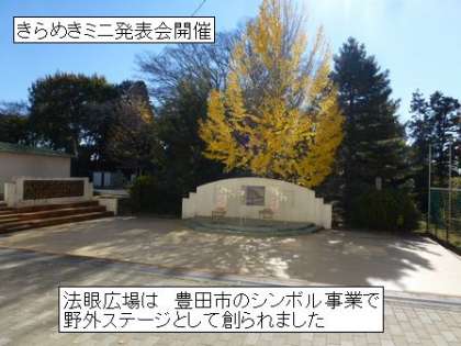 ついに、きらめきミニ発表会を野外ステージ「法眼広場」で行うことにしました。お笑い・歌(カラオケ)・楽器演奏など、得意なことを披露してくれる人を高学年から募集したところ、本日は「おわらい・バトントアリング・ガールズヒップホップ」の発表をする運びとなりました。その様子を活動の記録(非公開)でご覧ください。