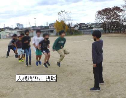 11月26日 文字探しウォーキング なわとび遊び 公開日 2022/11/26 更新日 2022/11/26 PTA活動 文字探しウォーキングの景品の一つが「とびなわ」です。これは、参加していない児童にも後日渡されます。 ボランティアの千賀先生の指導もあり、グランドいっぱいに広がって、なわとびを楽しみました。