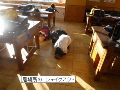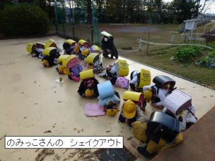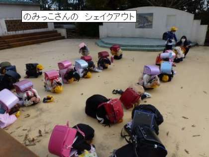 一斉下校時、シェイクアウト訓練を行いました。
