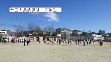 ・長放課や昼放課に1学年ごと運動場で短縄跳びを実施する。