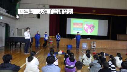 5年生は、消防署より講師をお招きし、応急手当講習を受けました。