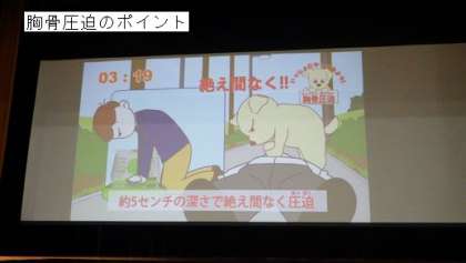 真剣に、胸骨圧迫の練習をしていました。