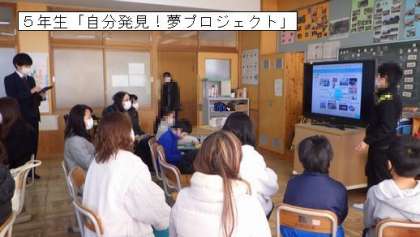 5年生は、法眼学習で「自分発見!夢プロジェクト」のキャリア教育を行ってきました。一人一人が、学習用タブレットで資料をまとめ、堂々と夢の実現をプレゼンテーションしていました。