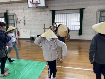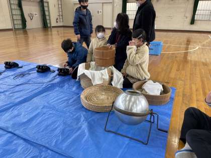 3年生は 郷土資料館出前講座で 昔の道具を実際に触ってみました。