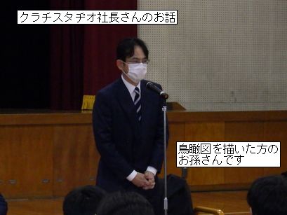 4名のお客様には、お寒い中のご来校に感謝いたします。今後とも、野見小学校の教育活動に お力をお貸しください。