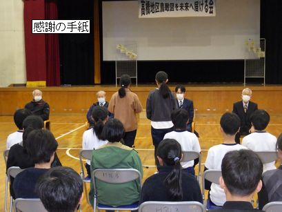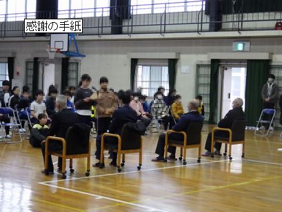 全校を代表して、二人の児童が 手紙を読み上げました。