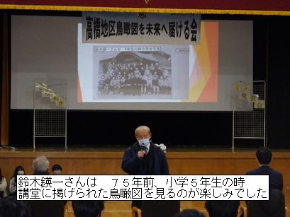 (3)高橋地区鳥瞰図は、今から75年前、終戦後2年間での復興の証として高橋村立野見小学校の講堂に掲げられました。当時の思い出を鈴木さんにお聞きします。