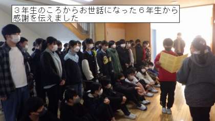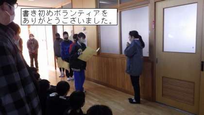 2月14日 書き初めボランティアさんに 感謝を伝える6年生