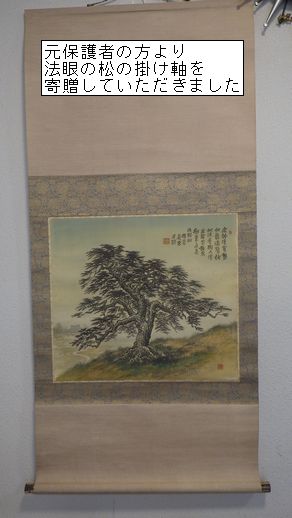3月1日 法眼の松の掛け軸を 寄贈していただきました 公開日 2023/03/01 更新日 2023/03/01 校長室から 本校卒業生の保護者の方に、法眼の松の掛け軸を 寄贈していただきました。150周年記念行事の1つに、150年の歩みの展示室を作りたいとの地域の声があります。資料室の展示品としても 皆さんに見ていただけそうです。 どうも ありがとうございました。