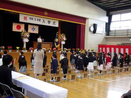 入学式では、50名の新1年生が野見小学校へ入学しました。