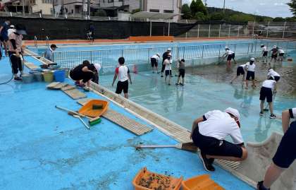 6年生がプール掃除をしました。地域から5名のボランティアさんも参加してくださいました。ありがとうございました。