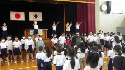 「今月の歌」では、6年生が全校をリードしました。