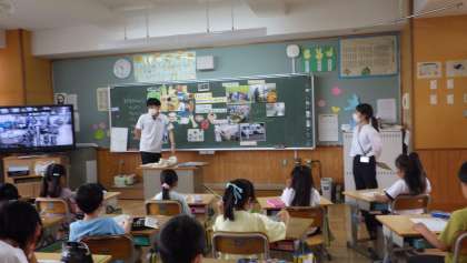 給食センターから栄養士の方に来ていただき、給食がどのようにつくられているかを学びました。