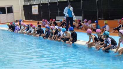 その後、プール開きでした。