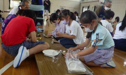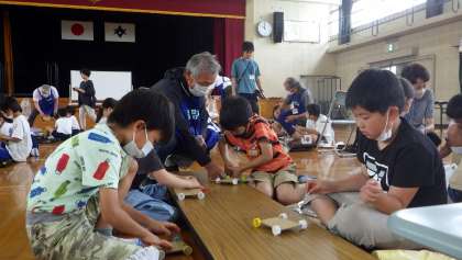 ものづくりサポートセンターの方に講師として来ていただき、3年生が風で動く車を作りました。